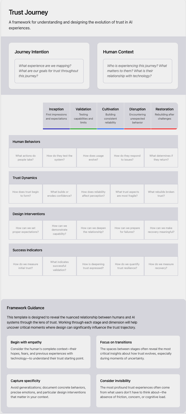 Design Leader Action: Review how your AI system introduces itself. Does it set realistic expectations or overpromise? Does your onboarding journey give users visible control and transparency about data usage? Does it establish clear boundaries of capability?
